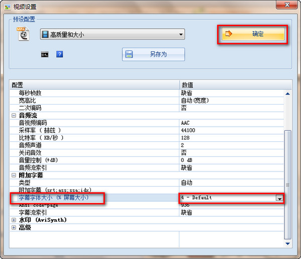 注意:选择字幕字体的大小,主要是相对于屏幕大小来说,然后点击“确定”