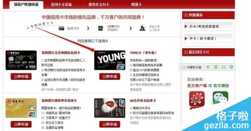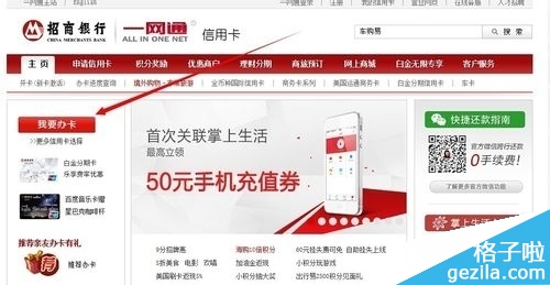 1、打开招商银行首页,点击菜单栏中的'信用卡“,