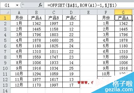 以F列和G列为辅助列。将A1:A13区域中的 月份 数据复制到F列,在G1单元格中输入公式:
