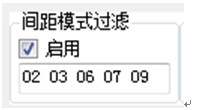 间距指的是两个相邻号码之间的距离(大号减小号),例如01 03 之间的间距是2, 08 09 的间距是1, 如上图所示的 02 03 06 07 09 的间距模式是 1 、3、 1、 2, 所以根据这组号码我们就可以过滤掉 01 02 05 06 08,03 04 07 08 10等号码。