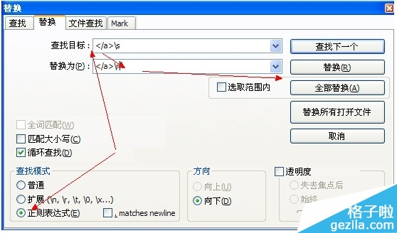 然后给大家讲讲怎么在notepad++里面,将字符串替换成换行