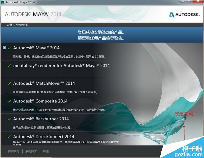 (图七)maya2014 64位中文版安装完成,点击完成。 如图七。