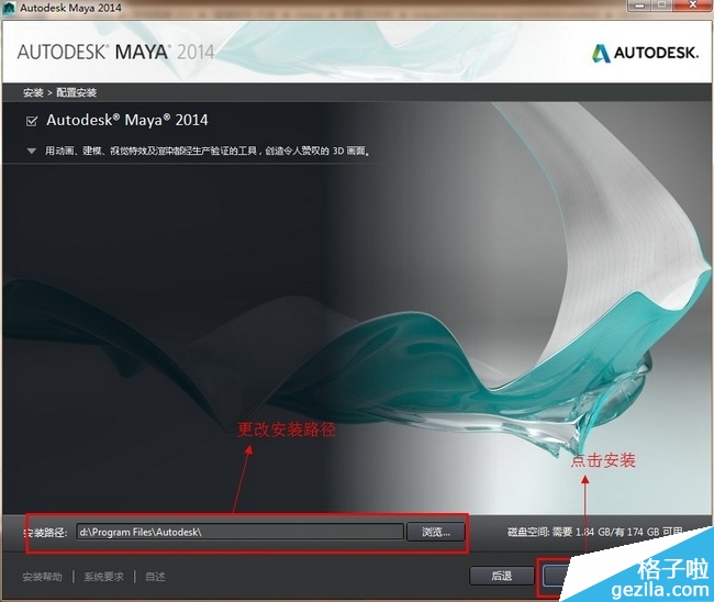 第六步:更改maya2014 64位中文版的安装路径