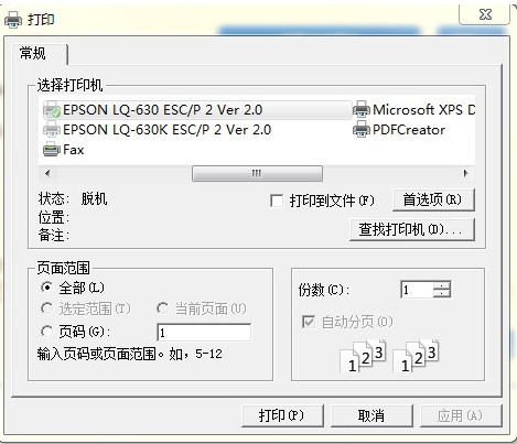 4、选择打印机,然后点击“打印”,在“打印”页面中,其它打印参数设置无效,该对话框只用来选择打印机的