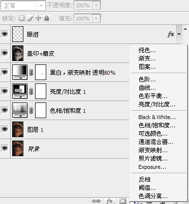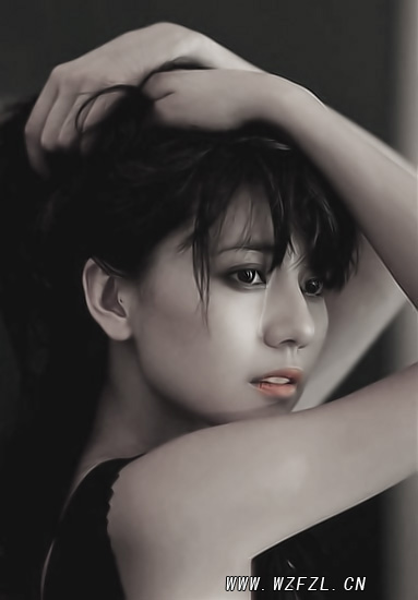 思路:为了体现出伤感的效果,所以我把皮肤尽量搞的没有血色一点,要把色调往冷色调方向调整,加上眼泪的点缀,就更有伤感的效果了。