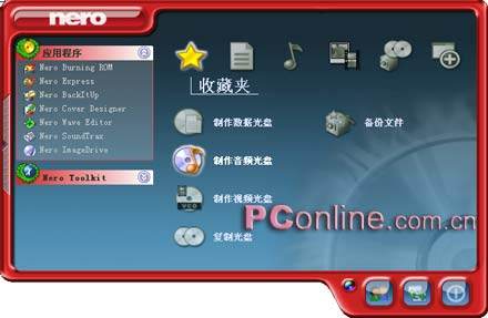 三款软件中,都提供了与刻录光盘相关的基本功能,在笔者的试用中发现Ahead Nero 6是提供刻盘功能最多最全的一个,除具有向光盘写入数据、以映像文件格式向光盘写入数据(包括制作映像文件)、制作音乐CD、复制光盘、抽取CD音轨等常用功能外,还具有制作可启动光盘、加密光盘、混合型光盘等特殊功能,另外它也是三款软件中,对中文文件刻录支持最好的,不会出现刻录中文文件而出现刻录失败的现象。
