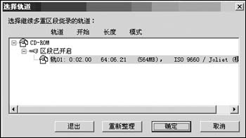 检测可编辑否:Nero精灵->编辑新的光盘->下一个->数据光盘->下一个->继续编辑现有数据光盘(多重区段)->下一个->完成,选择轨道信息->确定,结果见图1,这样的盘片有救。如果显示“读取CD时发生错误,光盘可能已损坏”字样就不行了。