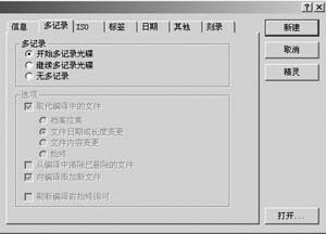 3、如果你的CD-R/RW是空白的,并且要写入的数据不足一张光盘的容量(650MB/700MB),这时你就可以选“多记录”。如果你的CD-R/RW光盘已经使用过“开始多记录光盘”并没有关闭盘片,那么可以选择“继续多记录光盘”来引入以前写入的数据。当使用“继续多记录光盘”时Nero会预先读取刻录机中光盘最后的ISO轨道。如果你要一次写满整个光盘或不想再追加数据时就可以选择“无多记录”以获取最大的空间,最好的兼容性和最快的读取速度。