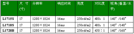 显示器方面LG 17寸液晶目前共有三款主流产品——L1715S/L1710S/L1720B。目前三款液晶显示器的报价分别为3888元/3988元/4288元。性能如下: