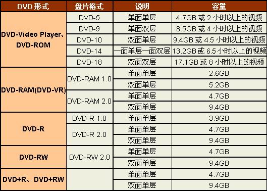 相对CD刻录格式的简单,DVD的刻录格式实在是太多了,在DVD格式的发展过程中,各大厂商在只读DVD-ROM的规格上没有异议,但是在可刻录规格上就出现了分歧。