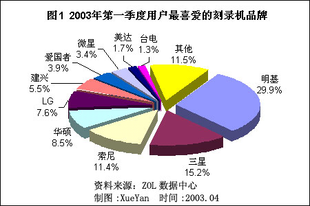 2003年一季度用户最喜爱的刻录机调查分析报告
