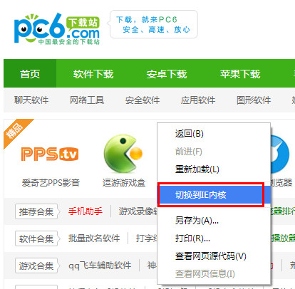 其实设置很简单,大家也不要在浏览器的设置中找了,小编已经逛了一圈没看到。其实只要右击“切换到IE内核”就可以了