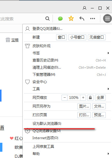 2、在弹出的下拉中就有一个“设置为默认浏览器”。