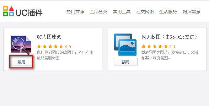 3、这里就可以看到您已经开启的功能插件了,选择需要的开启,不需要的禁用即可