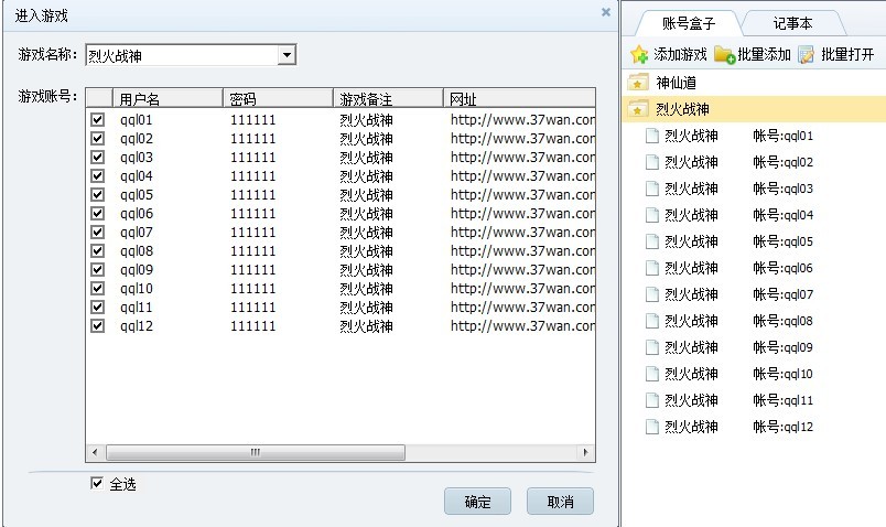 第二、多号一键登陆,在游戏盒子里选择你要的账号,点击确定即可一键登录多个账号