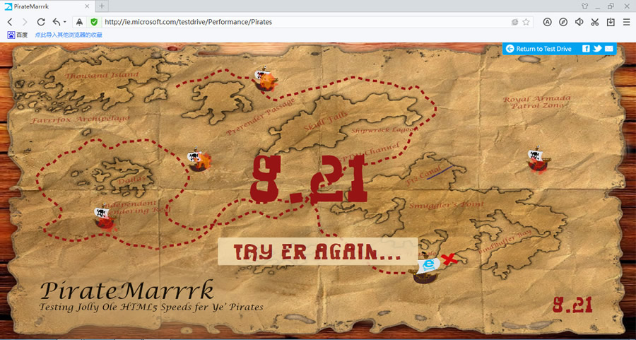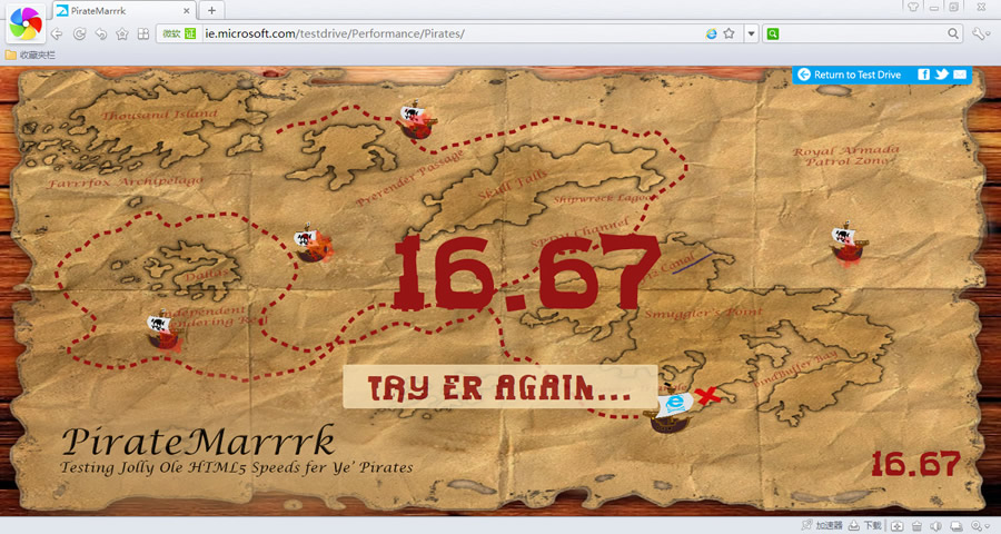测试二:http://ie.microsoft.com/testdrive/Performance/Pirates/