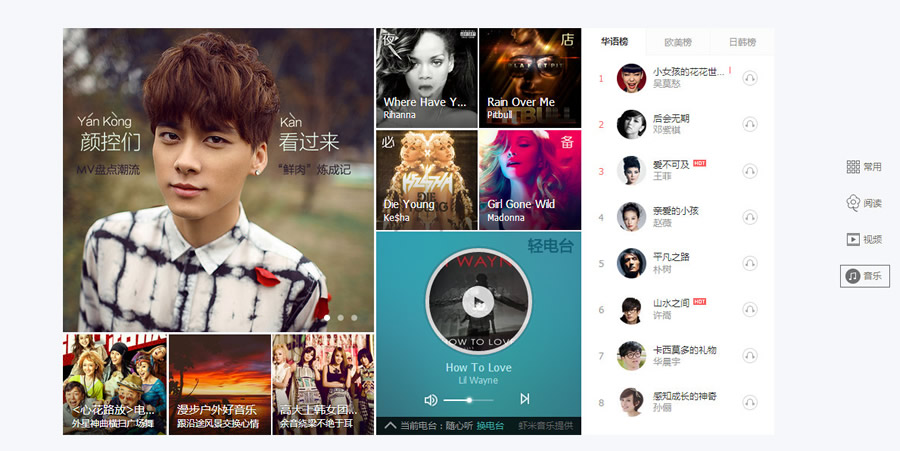 鼠标在新标签向下滚动可以看到四个类型的内容推送页。“常用”、“涨知识”、“看视频”和“听音乐”。对应的分别是页面、文字、视频和音乐类的内容推荐。内容本身还是朝着文艺清新的方向,而这四个分页也不会对本身浏览的过程造成干扰。想看的很容易找到,不想看的也不会被强推。这种用户与功能间适当,距离感是值得称赞的。