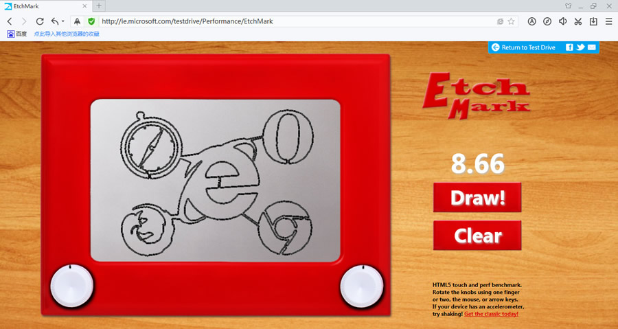 测试三:http://ie.microsoft.com/testdrive/Performance/EtchMark/