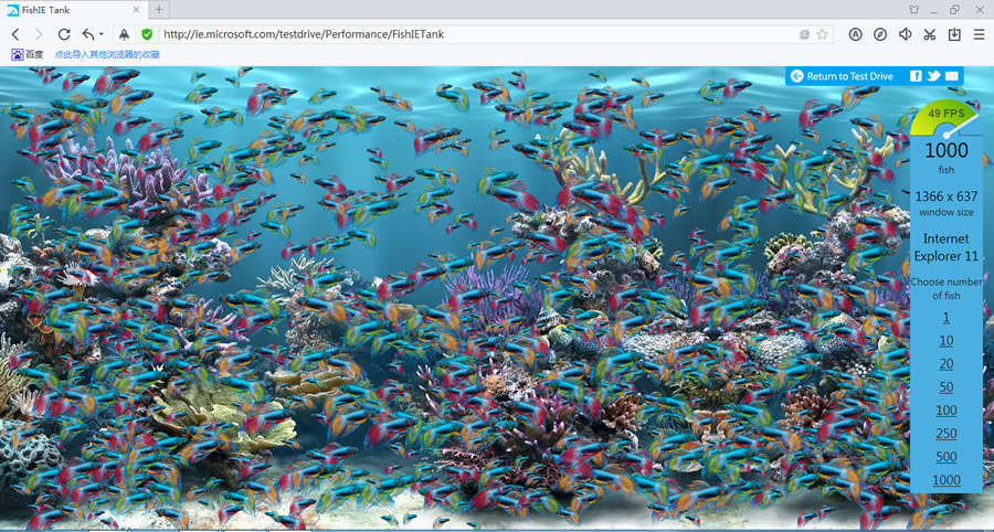 测试四:http://ie.microsoft.com/testdrive/Performance/FishIETank