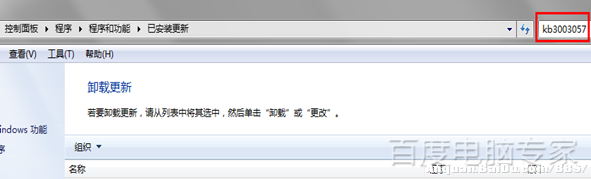 5.窗口的右上角有一个搜索框,输入“KB3003057”,即可找到该补丁