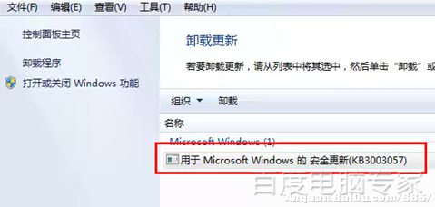 6.找到之后,鼠标右击KB3003057补丁选择【卸载】后,重启电脑即可!