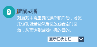在辅助大全中将键鼠录播设置为“显示在状态栏”即可点击使用。键鼠录播的详细教程可以跳转至网页:http://youxi.tg1234.com/tool/sblb.html