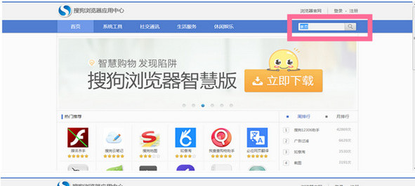 第二步:在搜狗浏览器应用中心界面搜索“截图”