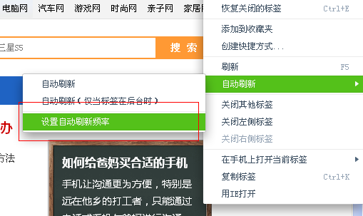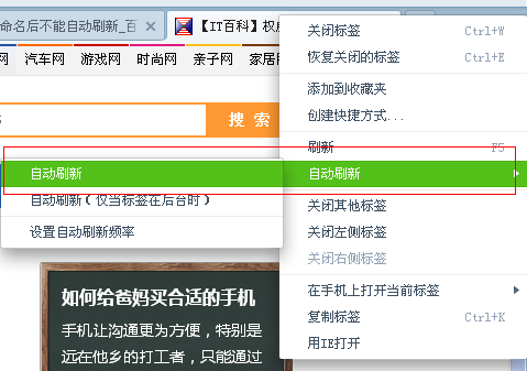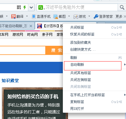 步骤三:安装完之后,运行360浏览器,打开你要访问的页面,比如IT百科首页,当你想设置自动刷新时,在页面标签处,单击右键,将弹出标签菜单:
