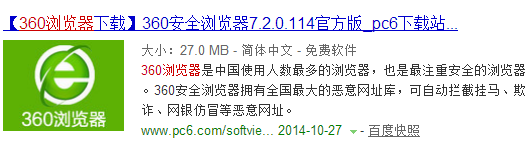 步骤一:打开你常用的搜索引擎,例如百度,键入“360浏览器”。推荐大家到PC6下载,安全快速无毒!