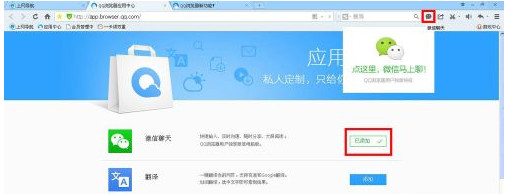第三步:添加成功后,点击浏览器上方的微信小图标