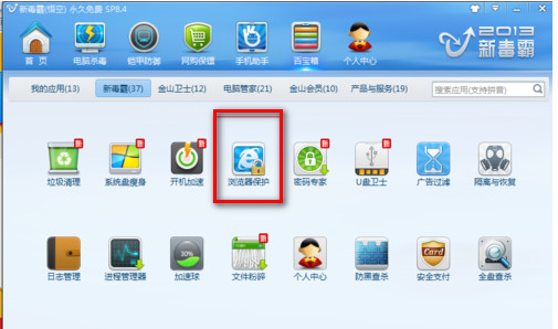 第二步:点击百宝箱,然后找到浏览器保护,(下图画红框的)