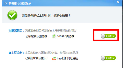 第三步:点击“浏览器保护”,在这里可以修改默认浏览器以及浏览器的主页锁定