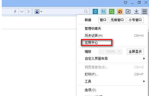 第三步:菜单-应用中心,打开百度浏览器应用中心。