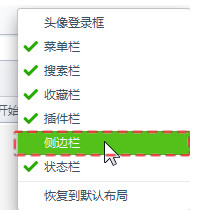 没有“侧边栏”和那个时钟一样的图标?360安全浏览器默认是显示“侧边栏”的,但是你把菜单栏隐藏了起来,所以才会这样。请在360安全浏览器的上方点一下右键,再点“侧边栏”,再执行上面的那一步。