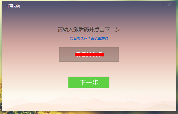 因为是内侧版本,所以需要输入激活码,激活码可以通过访问千寻浏览器主页(WWW.QXLLQ.com)自助获取。好的,输入激活码后我们点击下一步