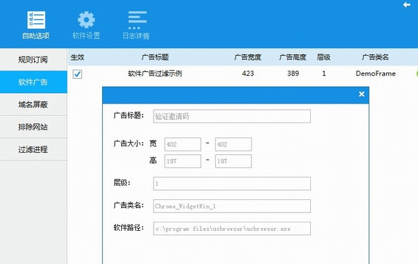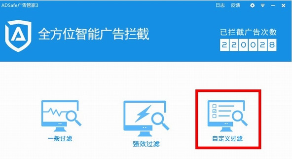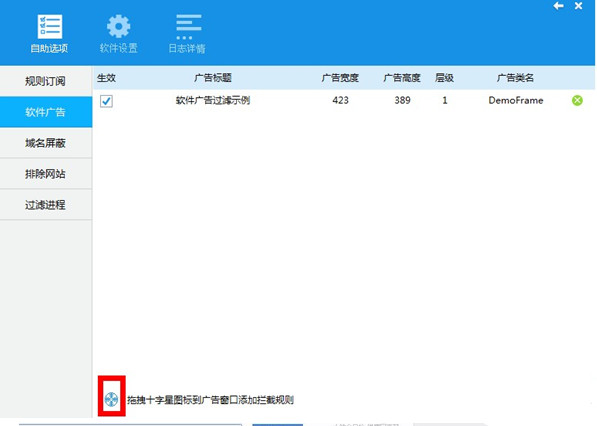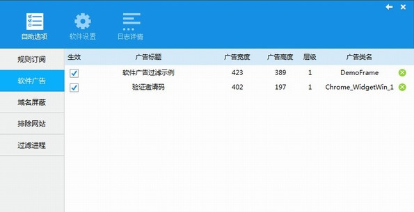 安装好这款软件后,选择自定义过滤,勾选软件广告,进入下面界面: