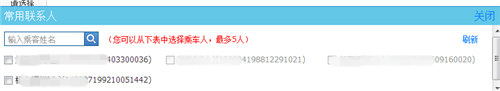 4.在乘车人一栏选择我们需要的购票的人,最多选择5个。