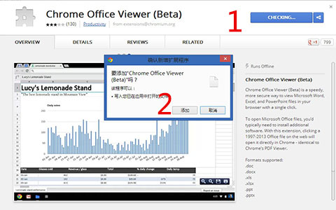 Step 1: 访问Chrome Office Viewer扩展页面,点击扩展页面右上角的ADD TO CHROME,按照提示进行添加下载,文件有点大。