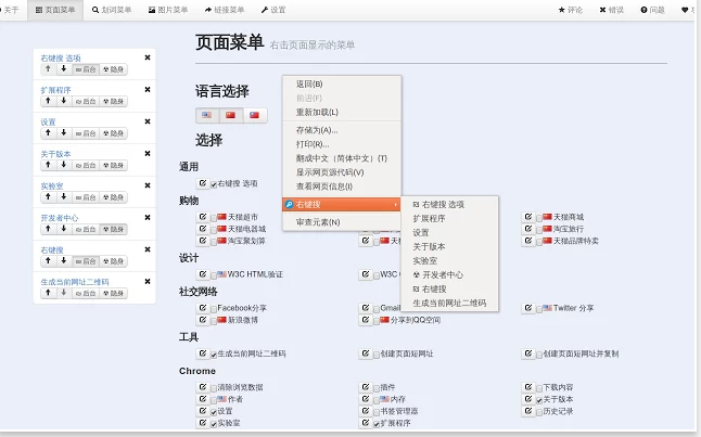 232种功能,方便的选择、组合或自定义页面、划词、图片菜单,并有生成、解析二维码和短网址功能。设置可使用云存储。实现超级拖拽链接、图片打开,文字拖拽搜索,方向不同打开方式不同。可达到零资源占用。最新增加网址共享、黑名单、自动更新、重命名等功能