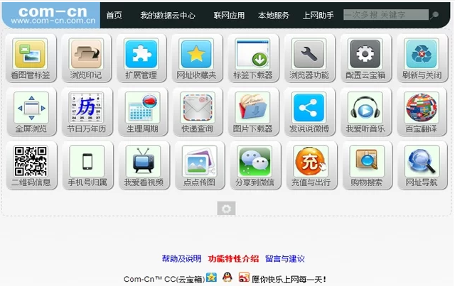 各种精彩应用,支持云同步去看图管理标签,还原浏览标签集,扩展管理,翻页翻面,批量下载,云购物,传图片,听音乐,看视频,发说说与微博,万年历,网址收藏,查快递,查发票, 网络搜索,浏览器功能快捷导航,网页个性化配置提高上网操作效率及互联体验