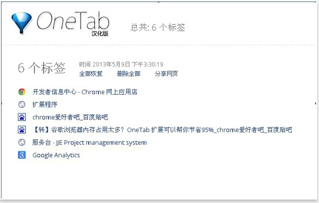 https://chrome.google.com/webstore/detail/onetab-%E6%B1%89%E5%8C%96%E7%89%88/bdaijkldmkgihfpljmpfmlhcngiijifn/details