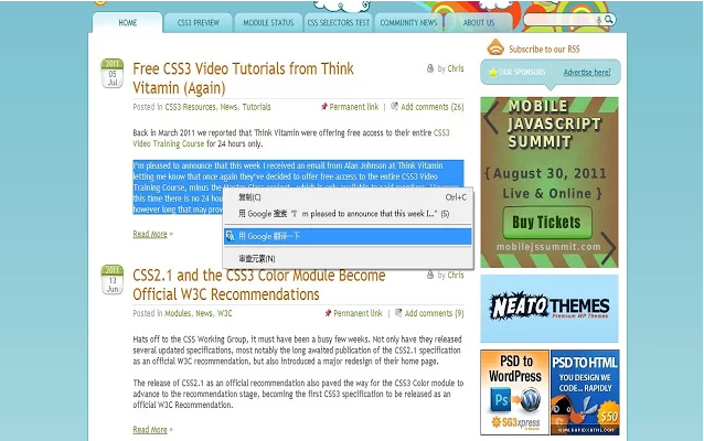 为选择文本的右键菜单增加谷歌翻译,支持页内划词翻译