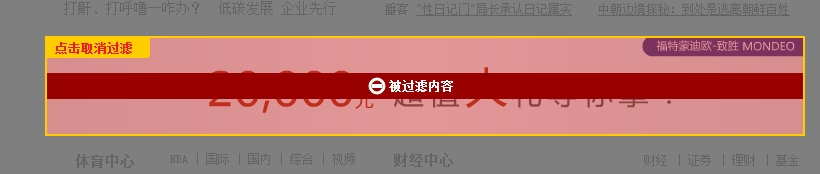 但是有的flash广告、文字广告无法通过上述简单的点击来实现屏蔽,这时不能容忍页面内有一丁点广告的人可以利用元素过滤来实现屏蔽。(注:元素过滤需要对html有一定了解)