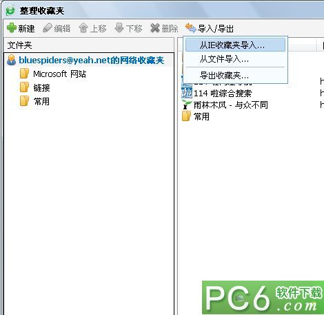 点击整理收藏夹,我们选中导入/导出,如图所示: