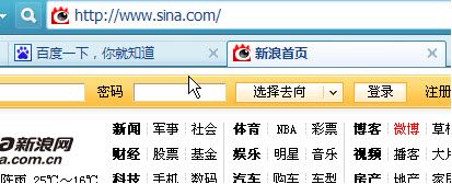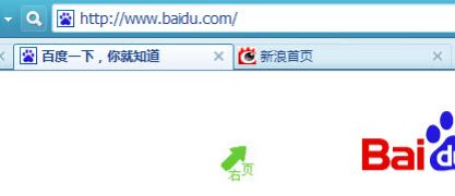 彩虹浏览器是一款深受网民喜爱的网页浏览器,其绿色、简约的特质,占用内存少,启动速度快的性能特征受到网民的青睐;另外,彩虹浏览器还有很多未被大家熟知的特色功能,在这做个简单介绍,其他的一些特色功能我们将在后续的文章中陆续介绍! 我们主要介绍彩虹浏览器的鼠标手势功能,如果您学会该功能的使用,将给您上网冲浪带来更多的方便! 如何使用? 所谓鼠标手势,简单的说就是您在按下鼠标右键到弹起鼠标右键的期间内,鼠标滑过的轨迹,不同的鼠标手势对应不同的浏览操作,可以方便您的浏览操作。彩虹浏览器中,用户可以按住鼠标右键不放往八个方向进行拖拽。方便之极哦! 鼠标拖拽方向: 向上拖拽:可以上滚半屏,与拉动滚动条效果相同; 向下拖拽:下滚半屏,滚动距离与拉动距离相关; 向左拖拽:可以后退一页; 向右拖拽:前进一页; 左上拖拽:转到当前页面左侧的页面; 左下拖拽:转到当前页面右侧的页面; 右上拖拽:关闭当前页面; 右下拖拽:刷新当前页面。 具体操作范例: 比如我们现在在浏览两个网页,在标签栏里面出现了两个标签,在浏览左边这个网页后又想看看右边网页,这时候就可以用我们的鼠标手势方便切换了: 现在我们同时打开了百度和新浪两个网站,这时候您想切换到新浪看新闻就可以在这时按住鼠标右键不放,向斜右方滑动,就可以方便的切换了。 图2.滑动前 图3.滑动后 怎么样,非常方便吧?同样的道理,想要从右边的切换到左边只要变变手势就可以了哦! 下面我们在介绍一下关闭页面的功能吧,有了它您就不用去点鼠标了哦! 图4.关闭当前页面 怎么样,彩虹浏览器是不是很有特色啊!如果使用它,不知不觉中你就会爱上它的!