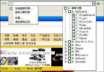 除了保留在MyIE2中的搜索引擎设置外,搜索条还加入了定制搜索引擎的高阶功能。