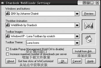 晨风提示:选择“开始→程序→WebBlinds→Enable-Disable WebBlinds”,可以调出禁止或激活换肤效果的选择框。