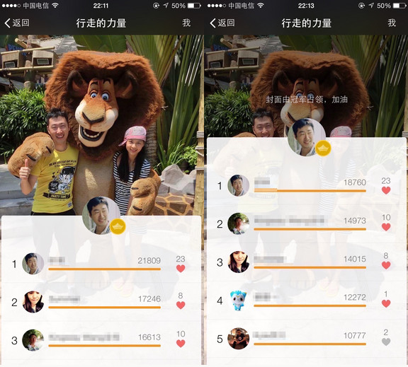 升级了微信 6.1.1 的 iPhone 5s/6/6 Plus 用户,只要关注“微信运动”这个帐号,就可以将自己每天的运动量导入到运动排行榜中,查看与微信好友比较之后的结果。并且可以跟好友PK,可以互动可点赞可看排名。