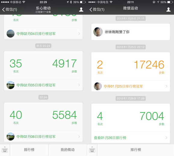 而 Android、iPhone 5 及以下的手机用户,只要购买了支持与微信互联的手环,或者下载支持与微信互联的计步类 App(目前有 2 款,正在陆续增加中),就可以将自己的运动量导入运动排行榜中。