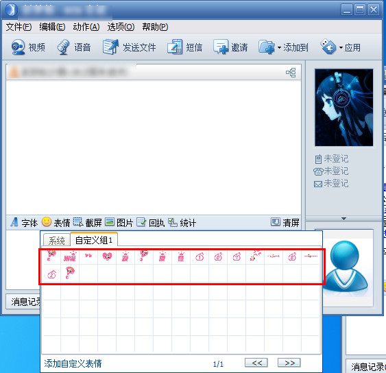 2.下载好了之后,登陆腾讯通,点开一个对话框,选择表情——添加自定义表情